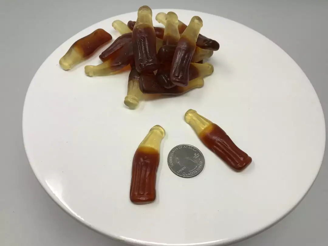 Gummi Cola Bottles. A cola-flavored gummi candy that resembles a soda bottle. This listing is for a bulk 1 pound bag of Gummi Cola Bottles.